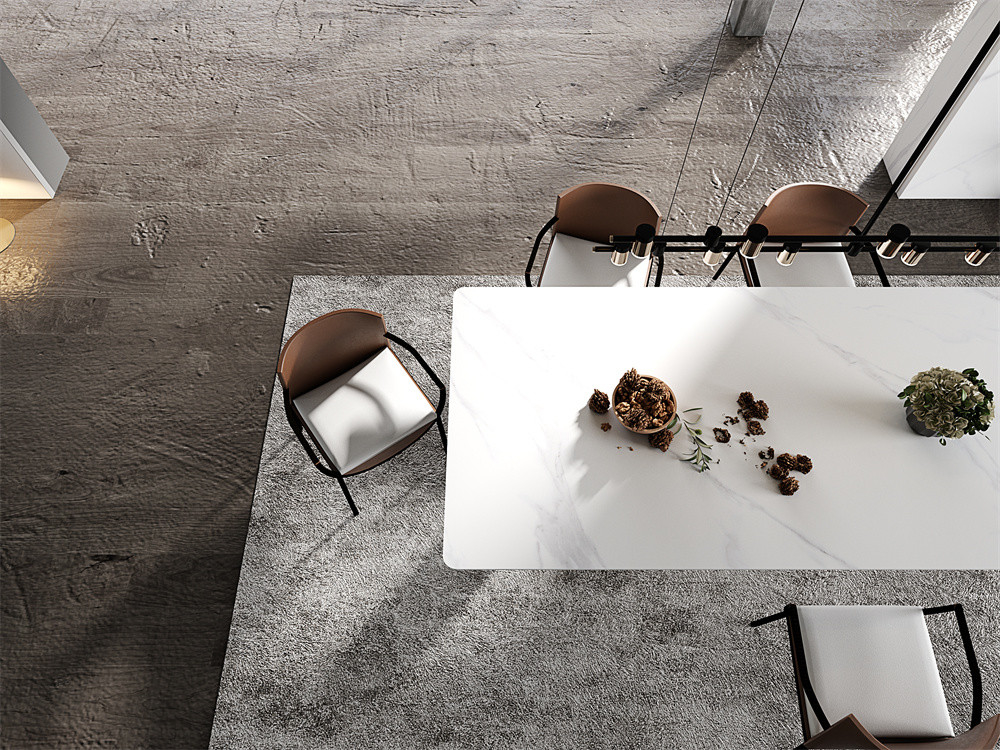 Transforman el ambiente de los baños con losas de piedra sinterizada de porcelana blanca.garantizar una superficie que no sólo sea elegante sino también duradera Su acabado de vidrio mate de losas grandes puede traer elegancia moderna a cualquier espacio, haciendo que cada momento pasado en los baños sea una experiencia más agradable.
