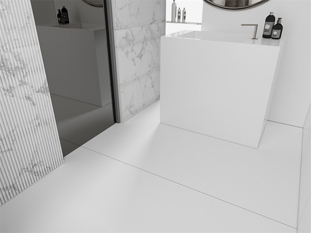 Mejora tu baño con losas de piedra sinterizada mate. Estas grandes losas ofrecen una superficie elegante y sofisticada, adecuada para los rigurosos requisitos de un ambiente húmedo. Las losas de piedra sinterizada resistentes al desgaste ofrecen un aspecto sutil pero lujoso que puede complementar tanto los estilos de decoración contemporáneos como los tradicionales. Ya sea que esté buscando crear un refugio sereno tipo spa o una habitación con una declaración audaz, estas duraderas losas de piedra sinterizada brindan infinitas posibilidades. Se pueden usar en paredes, pisos, encimeras de tocador e incluso áreas de ducha, integrándose perfectamente en cada rincón de su baño.