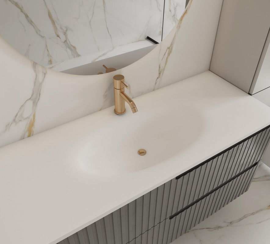 Hecho de losa de piedra sinterizada con un tamaño de 1600x3200x20mm, la calidad está 100% asegurada. Con diseño de curvado en caliente, no habrá preocupación por las esquinas sucias durante el uso a largo plazo.